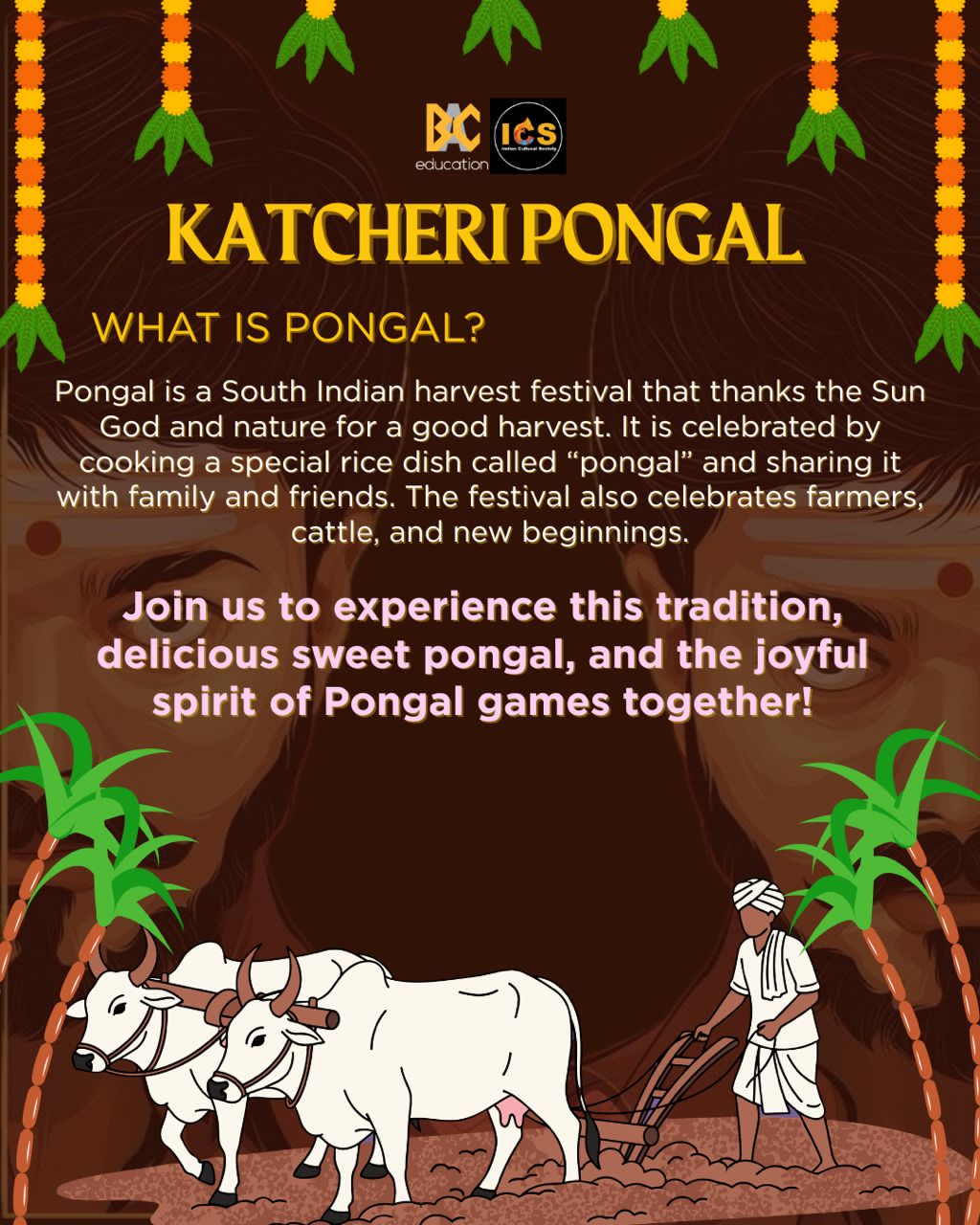 Join us as we make the pongal to pongalo pongal together and enjoy festive fun traditional games with friends.